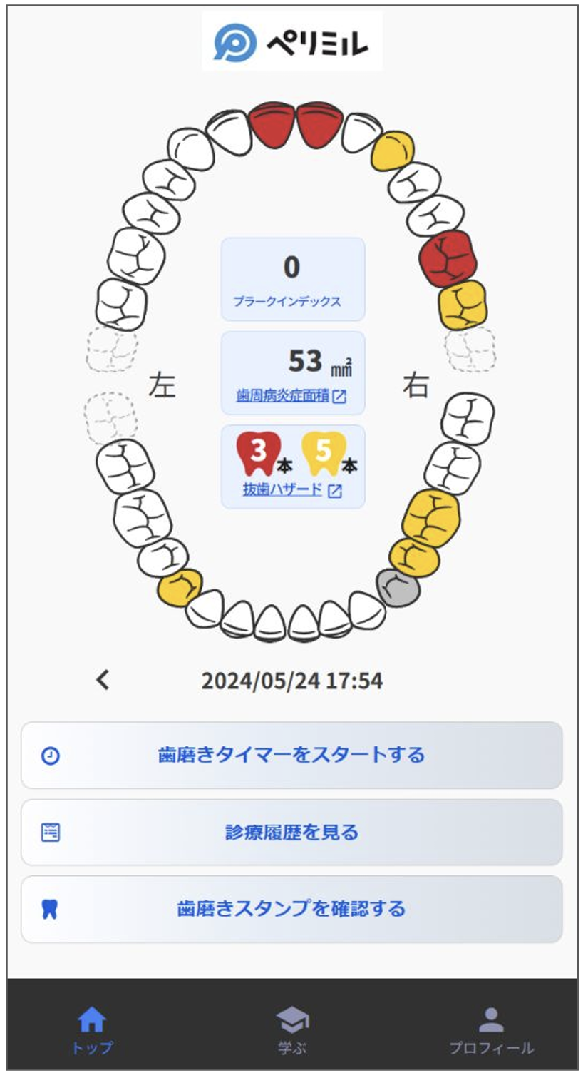 プラークコントロールレコードとは、歯の表面に付着したプラークを染め出して可視化し、その付着割合を数値で示す検査です。値が低いほど、日常的なブラッシングが適切に行われていることを意味します。